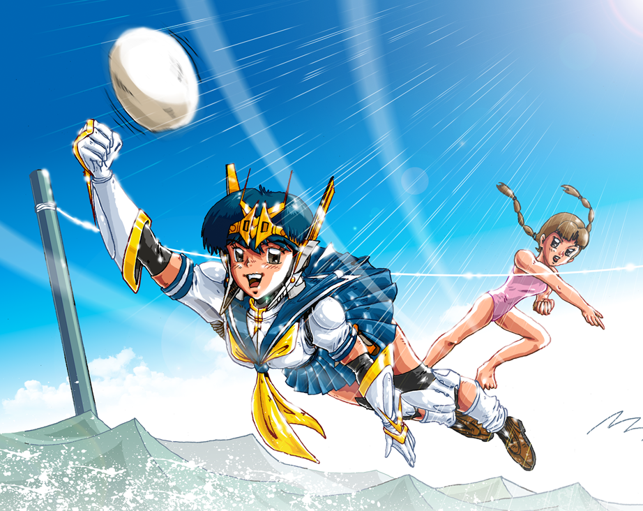 【 エリちゃん夏休みの思い出 】 スーパーヒロイン、テック・エンジェルには休息の日々はありません。 海水浴に出かけた海岸でも、すっかり夏休みモードのエリちゃんとは関係なく、新たな挑戦がエンジェルを待ち受けています。 ご町内のスーパースポーツ少女ハルカちゃんが、エンジェルに水上バレーボール対決を挑んできたのです。 挑戦を受けて立ったエンジェルに、ハルカちゃんの強烈スパイクが炸裂!! 果たしてエンジェルはハルカちゃんに勝てるのか!?